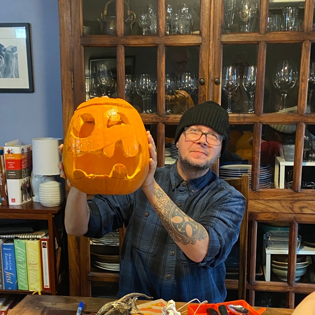 I love Halloween: the decorations, the costumes, the pumpkins. Perhaps the pumpkins most of all. The annual carving of the pumpkins is a tradition at our house. Every year, we buy enough pumpkins for anyone in our family who wants to carve one, and then we all get together the last weekend before Halloween to see who can create something goofy, spooky, or both.