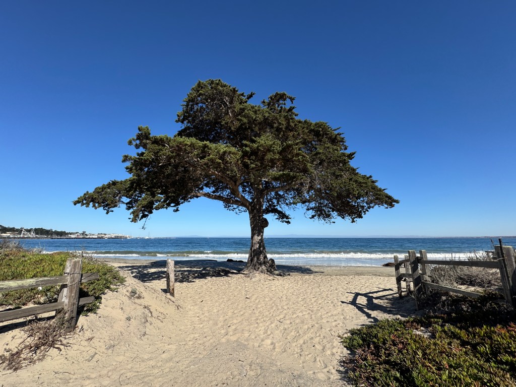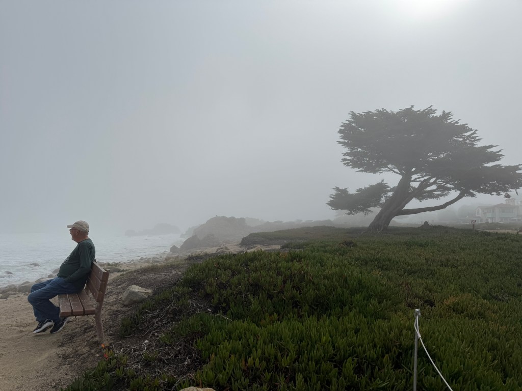 Flying directly into the five-gate Monterey airport from Minneapolis proved to be a good choice for starting our vacation/reset. Picking up our rental car was easy, and the route to our hotel took about 15 minutes. We had a room booked at the Centrella Hotel in Pacific Grove, and we arrived just in time for their nightly wine tasting. After enjoying some nice pinot noir, we took a two-block walk up the hill to dinner at a local Italian restaurant, La Mia Cucina, where we sat at a little table in back and enjoyed some wonderful classic spaghetti and meatballs for Mick and fresh fish for me. The evening closed with a post-dinner walk back down the hill, fog rolling in, and we were enchanted.
