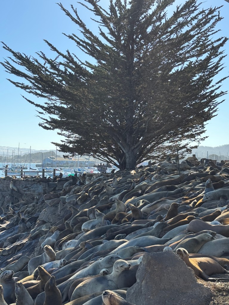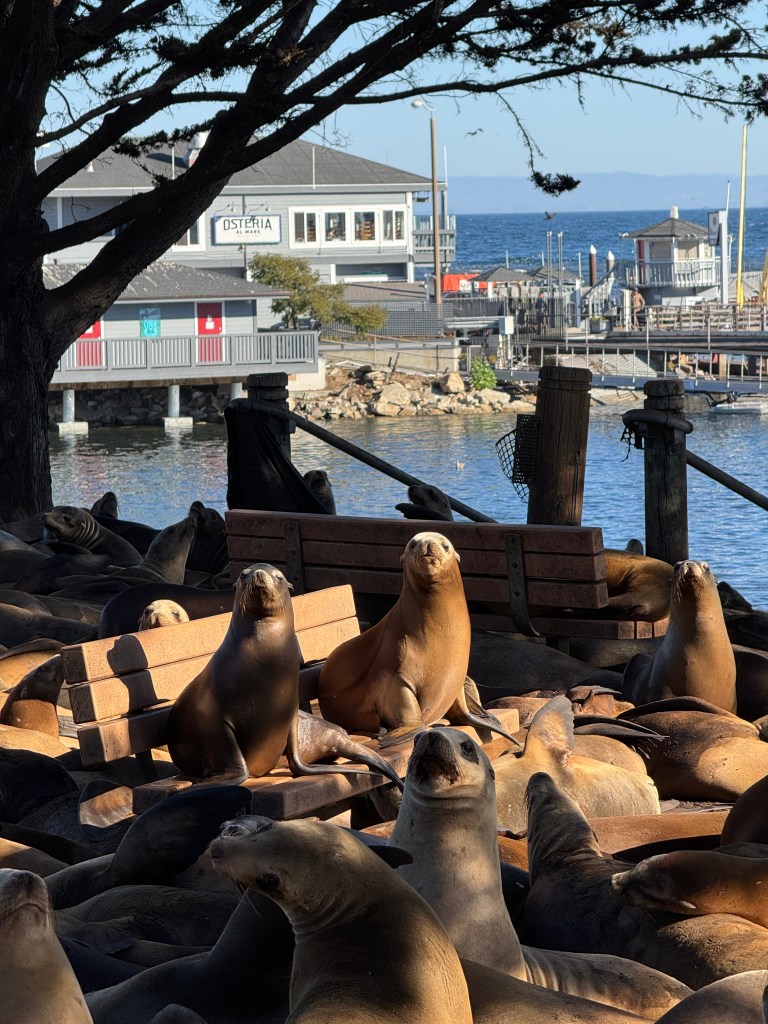 The site in Monterey we visited every day that we were there was, of course, where the sea lions have taken over an area near San Carlos Beach. There is a national marine sanctuary in Monterey Bay. I finally learned the difference between sea lions and harbor seals (sea lions have ear flaps and harbor seals don’t, sea lions bark loudly and harbor seals don’t). I also learned that massive groups of sea lions smell awful, but they are hilarious to watch.