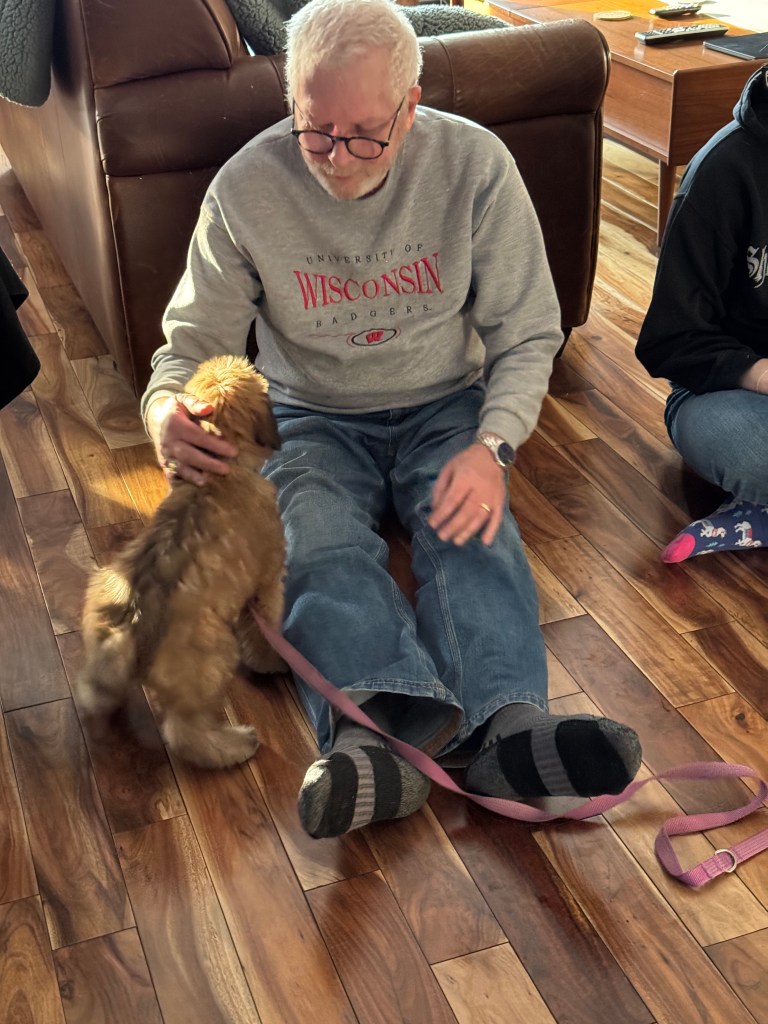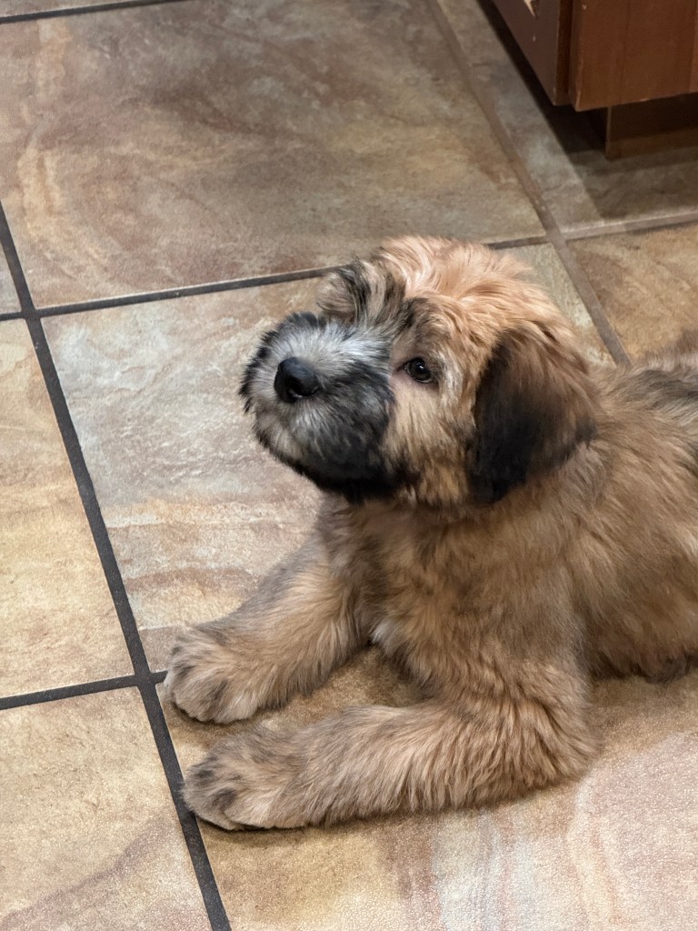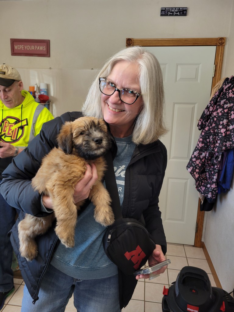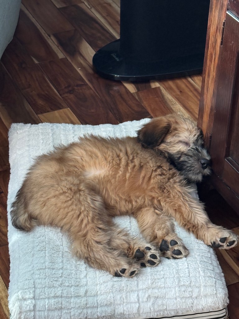 Our new family member, Finn the wheaten terrier, came home with us on Wednesday, February 19. Born on December 18, he is at a teddy bear stage: fuzzy, cuddly, soft. He mouths everything, follows us everywhere except when he needs to sneak in an accident. Crate training is a challenge, but we want him to have a safe place to be when he can’t be monitored or there is some kind of work going on inside our house, so it’s a must. Puppies are a lot: a lot of work, a lot of joy, a lot of snuggles, a lot of clean-up.