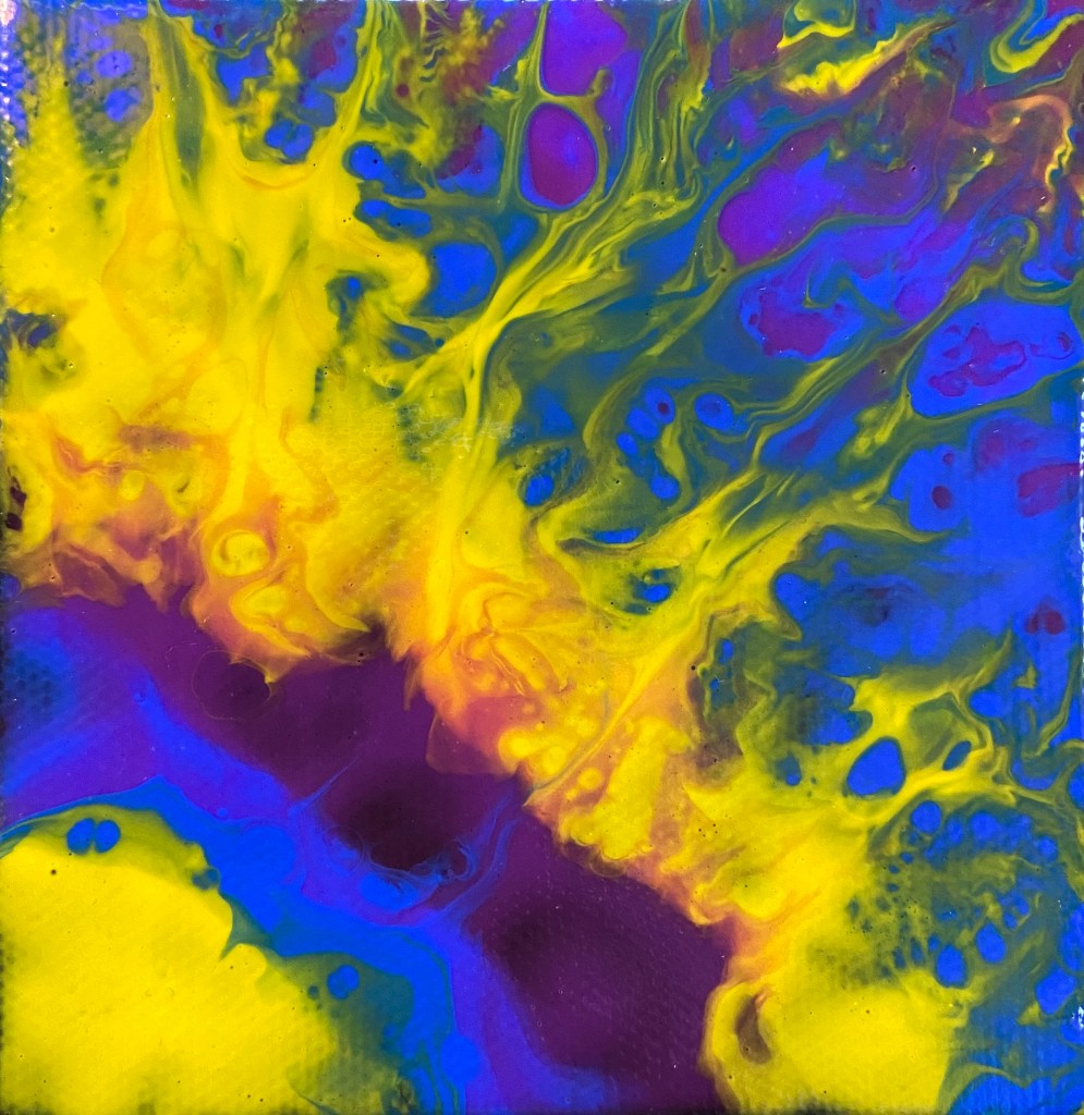 During the pandemic, I began learning to do paint pours. The creative outlet allowed me to play while thinking, learn new skills, and, eventually, create a small studio at home. These are some of the results.