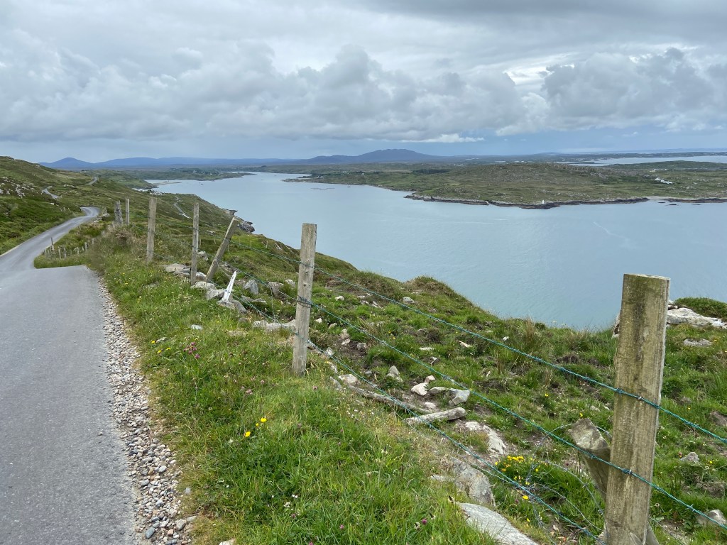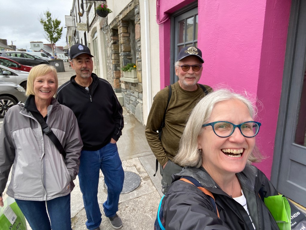 A night in a castle. Throne-like chairs in the entryway for photo ops. A champagne reception in the main floor piano bar/pub. A delicious dinner in the upstairs dining room where we waved away the person who tried to put an American flag on our table; we just wanted to be fellow travelers. A post-dinner stroll into the center of Clifden, a town known for the first transatlantic radio signal transmission and the first successful transatlantic flight landing. That the flight landed in a bog does not diminish its importance. We found a pub and listened to two guys with guitars play popular songs while we sipped our pints. Back at the castle, the piano bar morphed into a late-night disco. We chose the quiet of our rooms, that quiet being relative. Castles, it turns out, aren’t entirely soundproof.