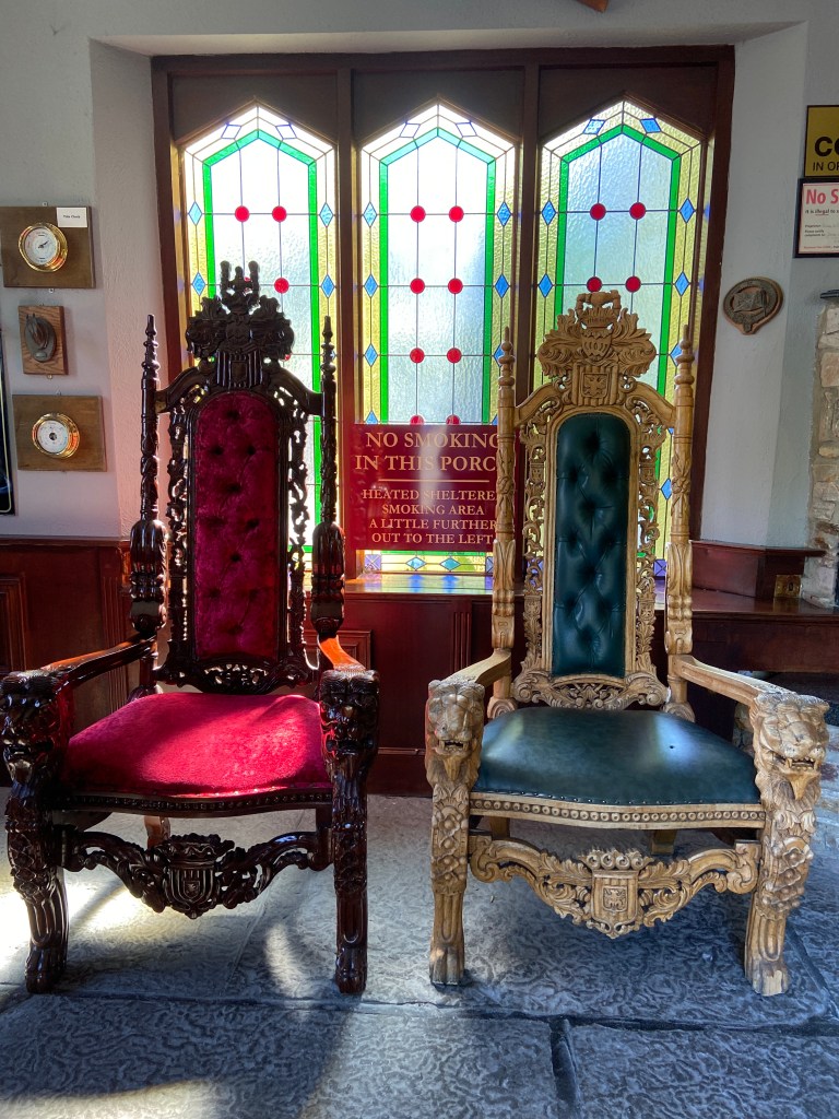 The wonderful royal chairs in the entryway at Abbeyglen